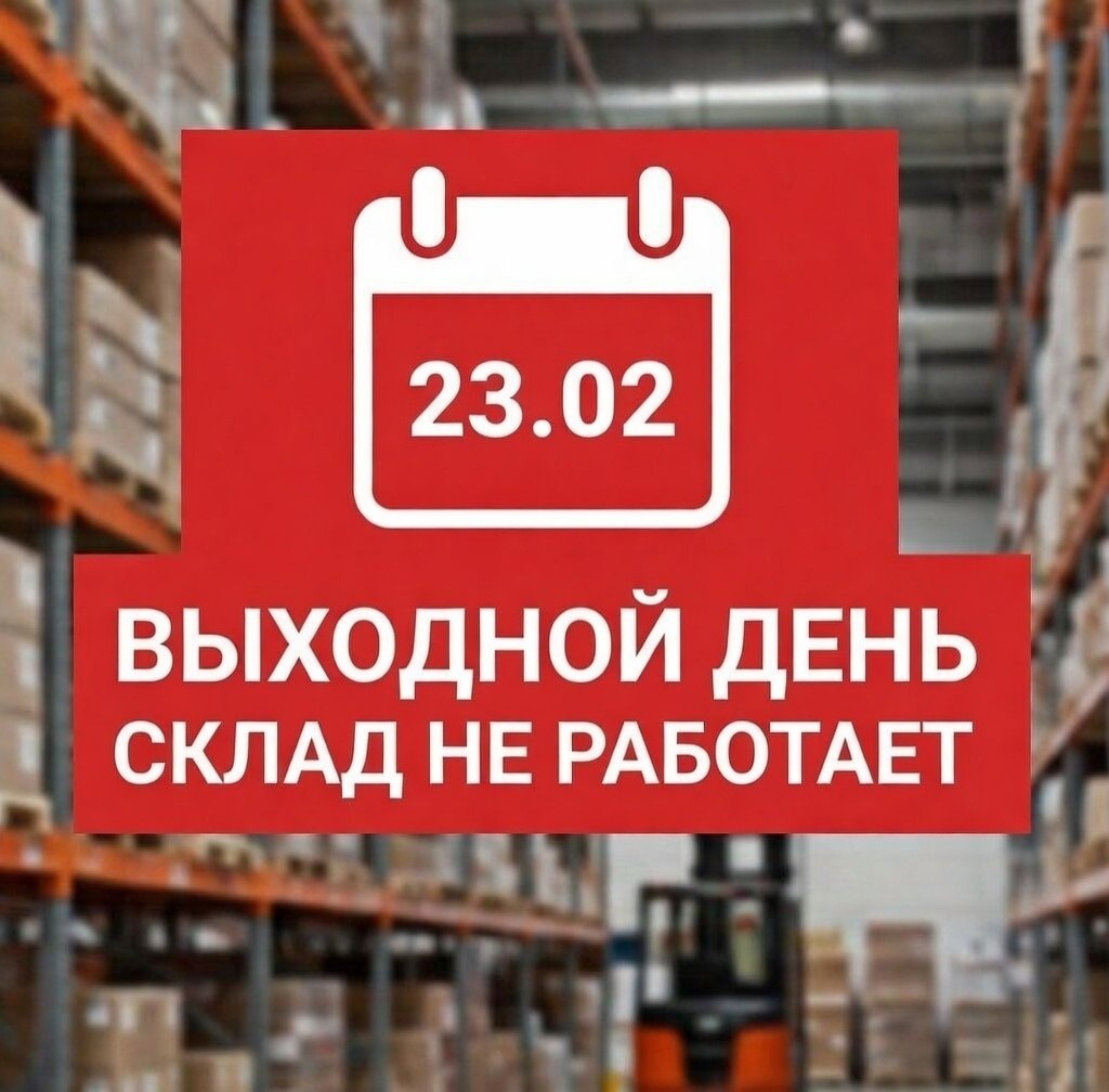 Сообщаем вам, что в связи с праздничным днем, понедельник, 23 февраля, склад по адресу г. Ростов-на-Дону. ул. Туполева, 16 А работать не будет 📌